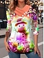 Women's Midi Dress A Line Dress Casual Outdoor Going out Standard Fit Floral Graphic 3/4 Length Sleeve V Neck Black White Red Spring Fall