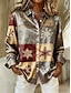 Christmas Women's Shirt Graphic Snowflake Vintage Stylish Modern Long Sleeve Shirt Collar Regular Tops Daily Holiday Patchwork Buttons Print Red Green Khaki Fall Winter