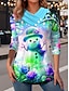 Christmas Women's T Shirt Floral Graphic Snowman Vintage Stylish Classic Long Sleeve V Neck Regular Tops Daily Weekend Buttons Print Blue Purple Orange Fall Winter