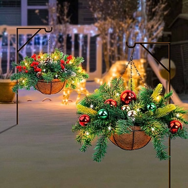 Christmas Artificial Outdoor Flowers with Hanging Basket, Hanging Planters Flowers for Xmas Winter Front Porch Garden Patio Home Decor