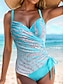 Women's Swimsuits One Piece Monokini High Cut Swimsuit Backless Tummy Control High Waist Slim Vacation Beach Wear Graphic Geometric U Neck Sleeveless Bathing Suits