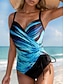 Women's Swimwear One Piece Monokini High Cut Swimsuit Tummy Control High Waist Slim Backless Vacation Vintage Ombre Graphic U Neck Sleeveless Bathing Suits