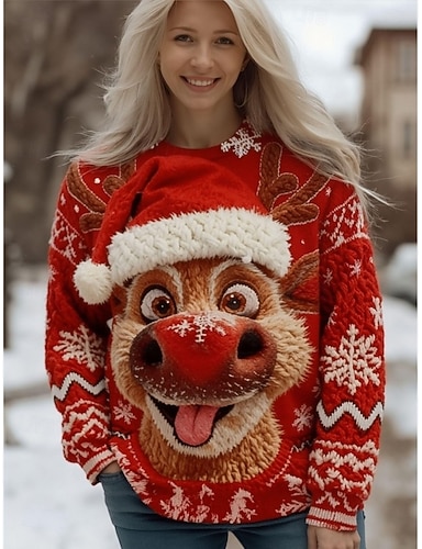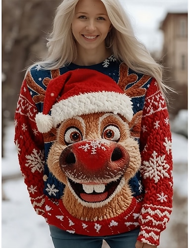 Christmas Women's Pullover Graphic Warm Classic Casual Long Sleeve Crew Neck Regular Tops Home Street Dailywear Print Red Blue Purple Green Fall Winter