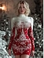 Women's Sweater Dress Stylish Snowflakes Turtleneck Print Long Sleeve Regular Tops Crop Tops Knit Christmas Red Fall Winter