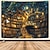 Tree of Life Hanging Tapestry Glowing Tree Bookshelf Warm Light Large Wall Art Mural Decor Blanket Curtain Home Bedroom Living Room Reading Nook Decoration