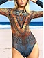 Women's Swimwear One Piece Monokini Swimsuit Tummy Control High Waist Slim Backless Vacation Fashion Graphic Geometic Round Neck Long Sleeve Bathing Suits
