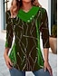 Christmas Women's T Shirt Graphic Christmas Tree Vintage Stylish Casual Long Sleeve V Neck Regular Tops Daily Buttons Print Asymmetrical Red Blue Purple Green Fall Winter