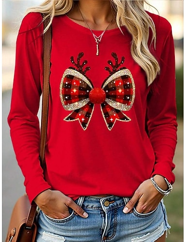 Christmas Women's Shirt Graphic Elegant Vintage Party Long Sleeve V Neck Regular Tops Party Evening Wear Daily Holiday Glitter White and Red Green / Red Pink Red Blue Spring Fall Winter