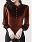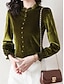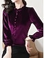 Christmas Women's Velvet Blouse Solid Color Elegant Stylish Basic Long Sleeve High Neck Regular Tops Daily Ruched Buttons Purple Brown Green Spring Fall Winter