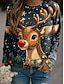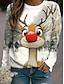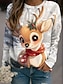 Christmas Women's Reindeer Sweatshirts Graphic Casual Long Sleeve Crew Neck Regular Tops Casual Holiday Print Black White Beige Fall Winter