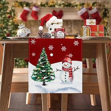 Christmas Table Runner, Holiday Atmosphere Linen Tablecloth Banner, Customizable Festive Xmas Dining Decoration