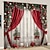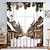 European Style Christmas Curtains 3D Digital Printing Window Drapes with Valance Elegant Holiday Decoration for Living Room Bedroom Home Decor Curtain Set