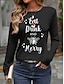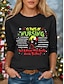 Christmas Women's T shirt Crew Neck Long Sleeve Tunic Casual Print Regular Tops Daily Black Spring Fall