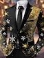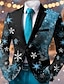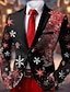 Christmas Men's Snowflake Blazer Jacket Coat Comfortable Breathable Artistic Casual Party Evening Wear Daily Festival 3D Print Buttons All Seasons Notch Long Sleeve Black Red Blue