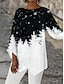 Christmas Women's Blouse Graphic Snowflake Vintage Tropical Stylish Long Sleeve 3/4 Length Sleeve Crew Neck Boat Neck Regular Tops Daily Holiday Buttons Print Asymmetric Hem White and Red Black Red