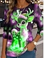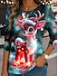Christmas Women's T Shirt Graphic Animal Reindeer Fashion Casual Long Sleeve Crew Neck Round Neck Regular Tops Daily Weekend Print Blue Dusty Blue Purple Green Summer Spring Fall Winter