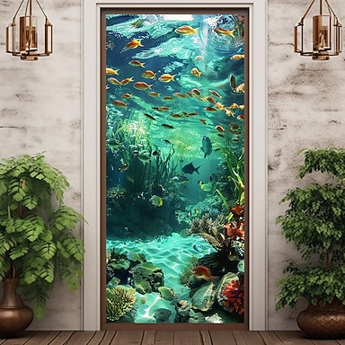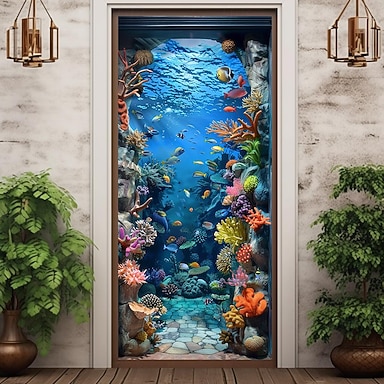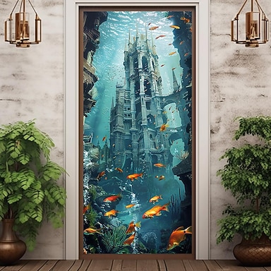 Underwater Cave Door Door Covers Door Tapestry Door Curtain Decoration Backdrop Door Banner for Front Door Farmhouse Holiday Party Decor Supplies