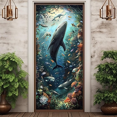 Ocean Creatures Door Decorations Door Covers Door Tapestry Door Curtain Decoration Backdrop Indoor/Outdoor Door Banner for Front Door Farmhouse