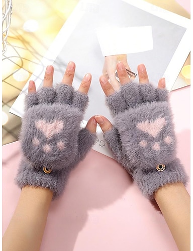 Women's Cat Paw Fuzzy Knit Fingerless Gloves – Soft Plush Fabric, Available in Multiple Colors, Perfect for Winter and Casual Wear.