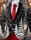 Christmas Men's Santa Claus Christmas Tree Blazer Jacket Coat Comfortable Artistic Casual Party Evening Wear Daily Festival 3D Print Buttons Fall & Winter Notch Long Sleeve Blue White Red