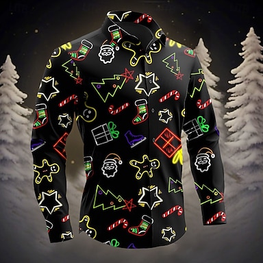 Christmas Men's Santa Claus Christmas Tree Gingerbread Man Dress Shirt Button Up Shirt Long Sleeve Casual Party Evening Wear Daily Festival Fall Winter Spring & Summer Shirt Collar Button Up 3D Print