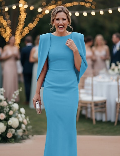 Sheath Column Floor Length Ball Gown with Cape Evening Gown Formal Dress Elegant Glittering Long Sleeve High Neck Wedding Formal Capes Sequined with Glitter