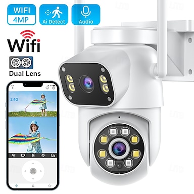Outdoor Surveillance Camera 360 Pan-Tilt WiFi 4MP Full HD Audio/Visual Alarms & Light Motion Detection IP66-Rated Night Vision 10x Zoom Two-Way Audio SD Card/Cloud Storage Super Easy Installation