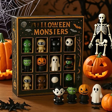Halloween Advent Calendar Countdown 16PCS Halloween Monster Figurines Host Mini Resin Figures, Spooky Zombie Collectible Toys for Kids & Adults