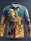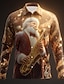 Christmas Men's Santa Claus Jazz Music Saxophone Shirt Button Up Shirt Long Sleeve Funny Christmas Gifts Holiday Spring Fall Turndown 3D Print Collared Shirts Blue Brown
