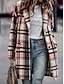 Women's Casual Jacket Comfortable Breathable Pocket Buttons Print Casual Plaid Vacation Street Casual Daily Wear Single Breasted Long Turndown Regular Fit Long Sleeve Outerwear Black Pink Red Spring