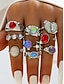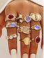 Women's Christmas Alloy Ring Set, Vintage Bohemian Style, Gold and Silver Adjustable Rings with Gemstones – Perfect Holiday Gift