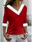 Jul Dam Blus Ensfärgat Elegant Stylish Grundläggande Långärmad V-hals Vanliga toppar Dagligen Paljetter Silver Svart Rubinrött Grön Vår Höst Vinter