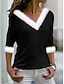 Dam Blus Ensfärgat Stylish Ledigt 3/4 ärm Rund hals Vanliga toppar Dagligen Svart Vit Rubinrött Blå Sommar Vår Höst