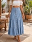 Dam Semesterkjol Mode Ledigt Maxi Medium Midja Kjolar Lappverk Oelastisk Blå Sommar
