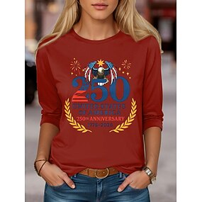 Amerikanska självständighetsdagen Dam T-shirt T-tröja Mönster Grafisk Randig Mode Grundläggande Klassisk Långärmad Rund hals Vanliga toppar Dagligen Utekväll Helgen Rubinrött Sommar Vår Höst 250th