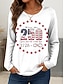 Independensdagen Amerikansk Jubilé Patriotisk Dam T Shirt Grafisk USA Flagga Mode Stilig Klassisk Långärmad Rundhals Daglig Helgtryck Svart Vit Röd Sommar Vår Höst