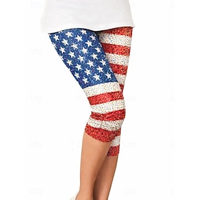 amerikanska självständighetsdagen damleggings semester mode streetwear capri byxor med hög midja flagga komfort mjuk bekväm stretchig daglig utomhus semester blå röd sommar vår höst smal passform