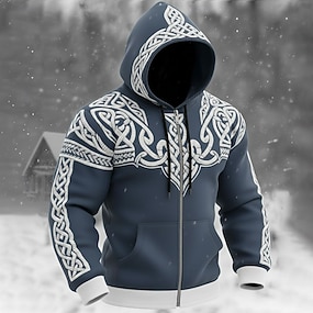 Herr 3D Print 3D-utskrift Celtics Huvtröja Jakke Tröja Viking Fantasi Heltryck Långärmad Blixtlås Streetwear Semester Utekväll Blå Svart Gul Dragkedja Höst Vinter Designer S M L XL XXL XXXL