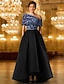 A-Linje Svart Festklänning Vintage Klänning Formal Bröllopsgäst Domartåg Lång ärm En Axel Satäng med Fjäder Slits