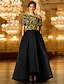 Svart och guld svart slips havsfru  trumpet kvällsklänning elegant svart klänning formell bröllop golvlängd utan ärm en axel sträcker satin med rosett/guldpaljetter spets