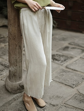 Dam Byxor av linne i bomull Kinesiska Sommarbyxor Streetwear Grundläggande Ledigt Fullängd Medium Midja Slät Snörning Ficka Komfort Oelastisk Dagligen Utomhus Gata risvit Hyacint Mörk Marin Grön Höst