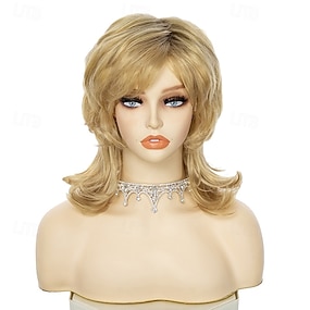 Medellånga blonda lockiga peruker för vita kvinnor korta lager vågiga bob-peruker syntetiska peruker blonda peruker för dagliga fester cosplay