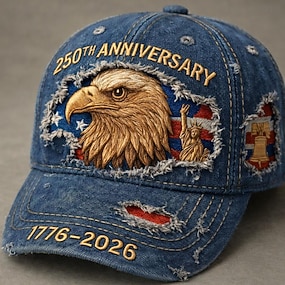 USA:s 250-årsjubileumsbaseballkeps i sliten denim med örnmotiv, vintage USA-keps 1776-2026, patriotisk självständighetsdagen-keps, vintage amerikansk flaggkeps för män och kvinnor