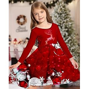 Flickor 3D Snöflinga Klänning Snowflake Klänning Långärmad 3D-tryck Höst Vinter Semester Sport & Utomhus Dagligen söt stil Ledigt Skön Barn 4-12 år Vardagsklänning A linjeklänning Ovanför knäet Normal