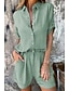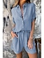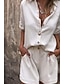 Dam Set med bomullslinne Set med shorts Halvlång ärm Tröjkrage Ensfärgat Elegant Mode Streetwear Ledigt Dagligen Utomhus Blå Svart Vit Sommar Normal