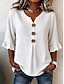Dam Blus Skjorta i konstlinne Knappar Ensfärgat Dagligen Ledigt 3/4 ärm V-hals Vanliga toppar Dagligen Svart Vit Rubinrött Orange Grön Sommar Vår Höst