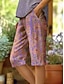 Dam Shorts i bomullslinne Semester Vintage kustnära mormor-stil Fullängd Medium Midja Blommig Grafisk Mönster Komfort Microelastisk Dagligen Gata Violett Sommar Vår Normal