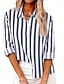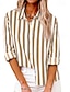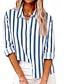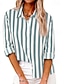Dam Skjorta Linneskjortor i bomull Blus Lappverk Knappar Randig Stylish Klassisk Modern Långärmad Tröjkrage Vanliga toppar Dagligen Helgdag Utekväll Blå Rodnande Rosa Grön Kaki Mörkblå Sommar Vår