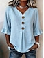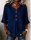 Dam Blus Volang Knappar Ensfärgat Stylish Grundläggande Ledigt 3/4 ärm V-hals Vanliga toppar Dagligen Blå Vit Marinblå Grön Sommar Vår Höst
