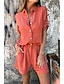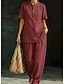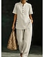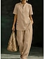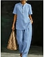 Dam Set med bomullslinne Byxuppsättningar Kortärmad Polokrage Ensfärgat Elegant Mode Streetwear Ledigt Dagligen Utomhus Blå Vin Kaki Vår & sommar Lös passning